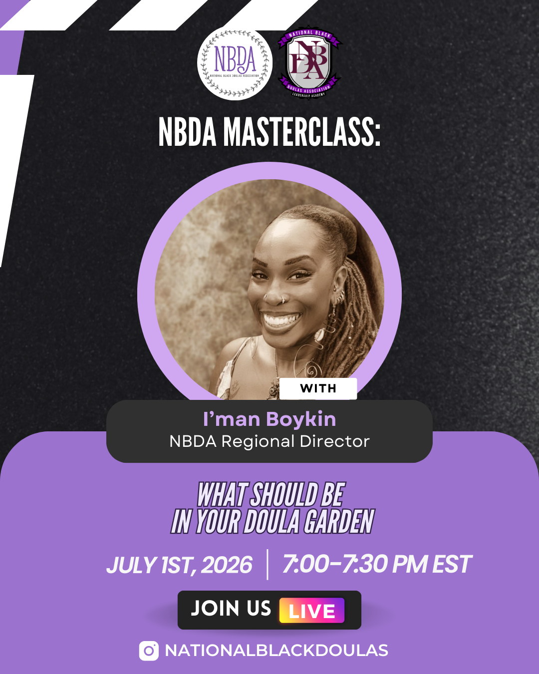 NBDA® Masterclasses are 30-minute, expert-led sessions streamed live on Instagram and YouTube. These sessions are designed to educate, empower, and inform Black families and communities within the birth space. Through accessible, culturally grounded, and evidence-based guidance on maternal health, advocacy, and wellness, we support informed decision-making, uplift trusted voices, and strengthen NBDA®'s leadership in Black maternal health education